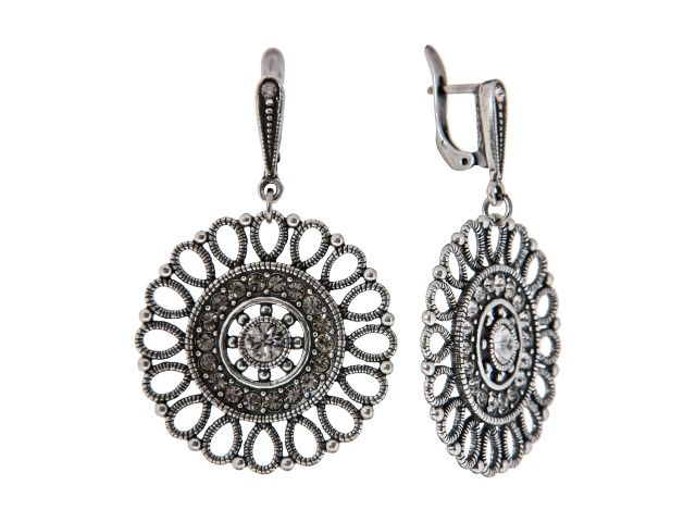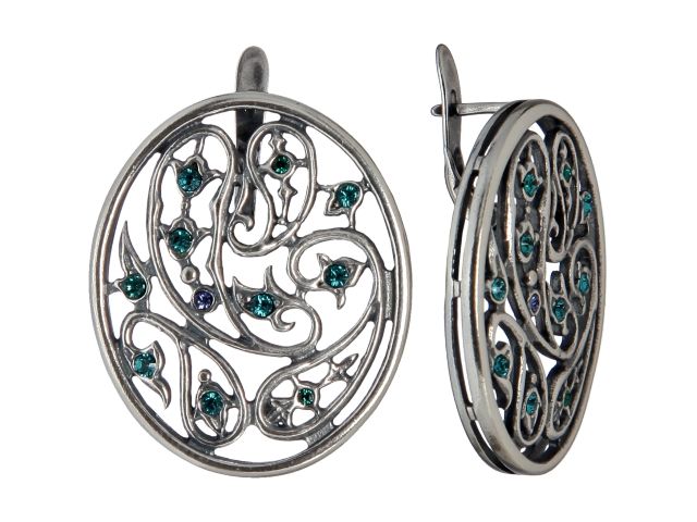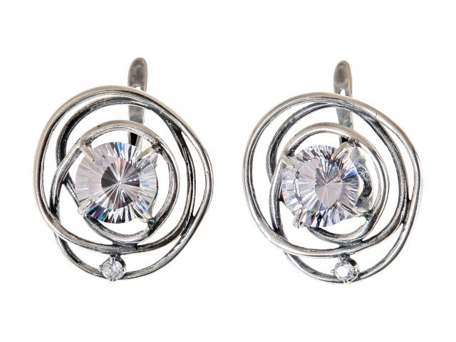 Серьги с гальваническим покрытием серебра. Вставка Сваровски