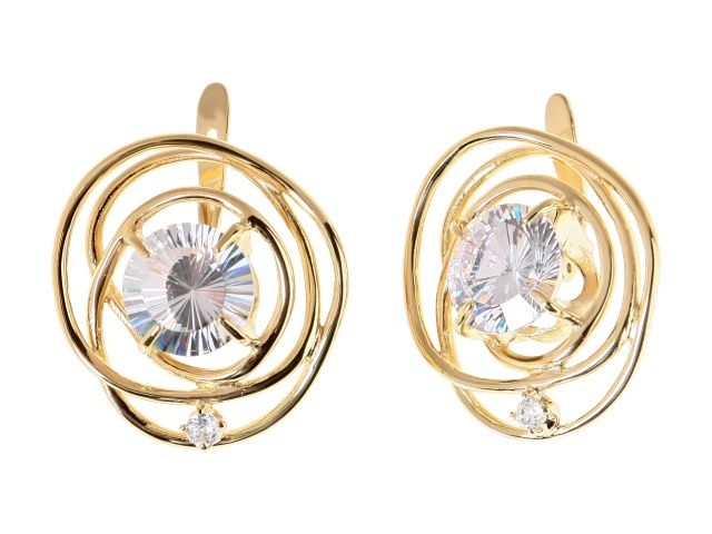Серьги с гальваническим покрытием золота. Вставка Сваровски