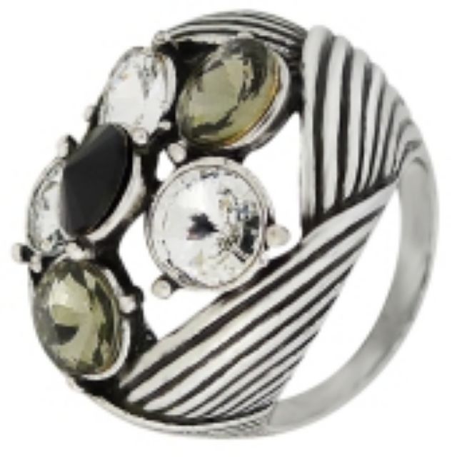 Кольцо с гальваническим покрытием серебра. Вставка Сваровски кристалл