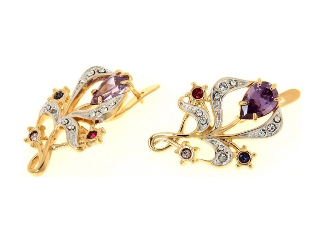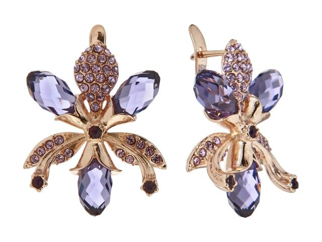 Серьги с гальваническим покрытием золота. Вставка Сваровски кристалл