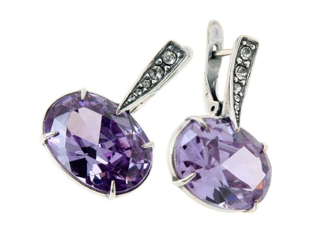 Серьги с гальваническим покрытием серебра. Вставка Сваровски кристалл