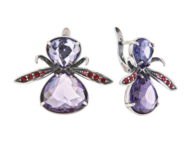 Серьги из ювелирного сплава. Вставка эмаль, кристалл.